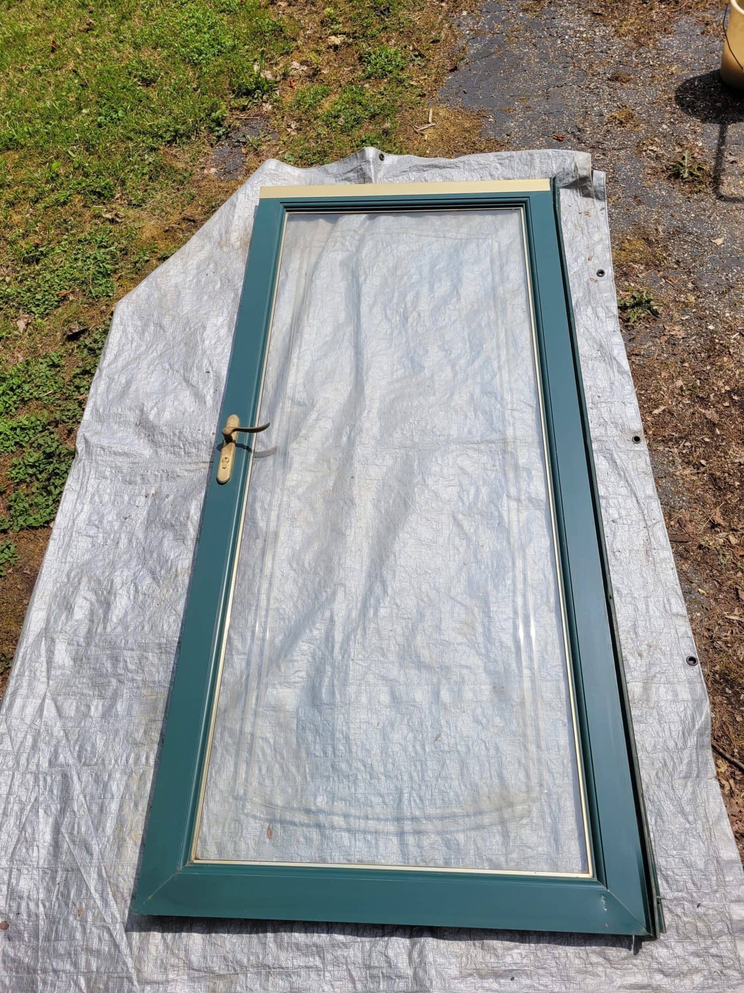 For Sale: Storm door, green metal frame, full length glass, screen insert included. Lever door knob with flip lock. No key. Very good condition. $140, must pick up in Ledger. Text 828-467-3973